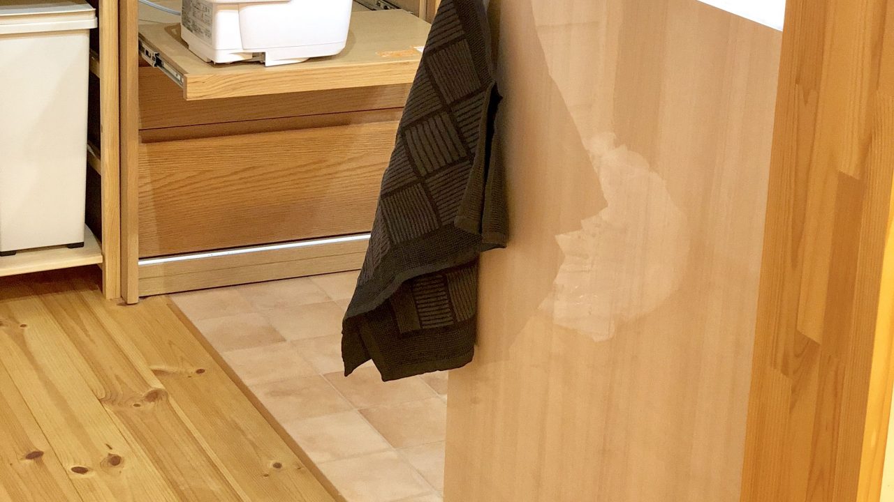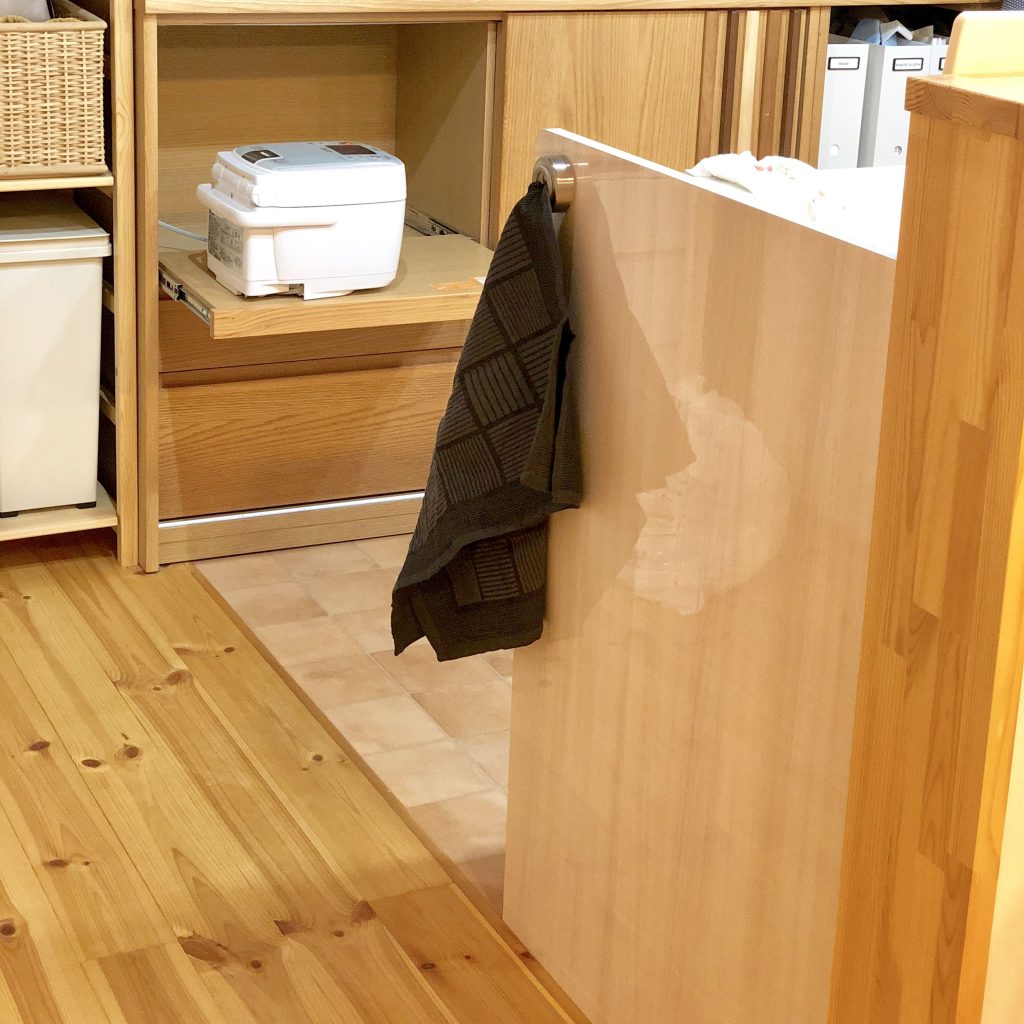 ここならちょっと大判のキッチンタオルも床につかずに引っ掛けられます。